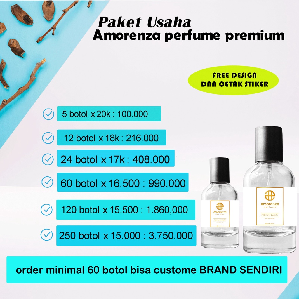 Amorenza Perfume : • Dibuat dengan konsentrat import Perancis & Alkohol Khusus Parfum. • Wanginya soft, dan tidak menyengat. mirip dengan originalnya. • TAHAN LAMA, Dengan wangi yang soft, di kulit bisa tahan 12 jam lebih. • Tidak mengandung zat-zat berbahaya. • Tidak berbekas noda di baju. • Tidak lengket, tidak panas di kulit, tidak gatal, tidak bikin kulit iritasi / memerah. 100% aman di kulit dan pakaian. • Harga jauh lebih murah dari parfum originalnya.
