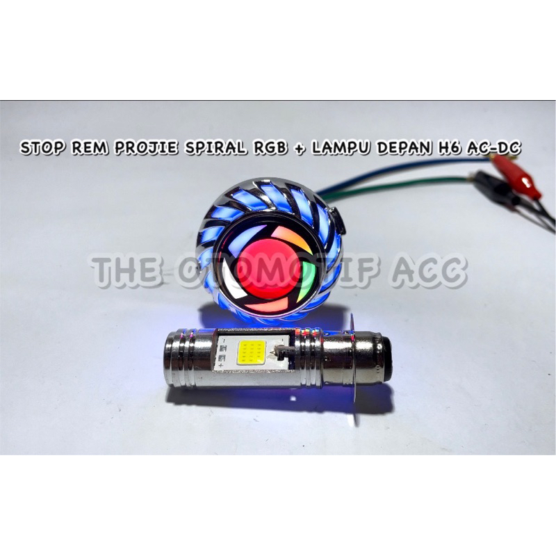 PAKET VARIASI MOTOR LAMPU DEPAN LED BEBEK AC DC + LAMPU STOP BELAKANG PROJIE RAINBOW SPIRAL