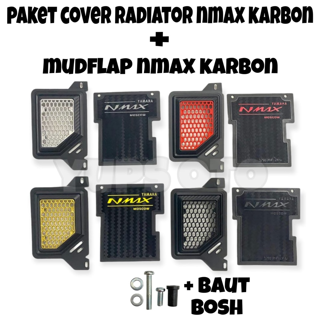 Detail PAKET VARIASI SET COVER RADIATOR NMAX MODEL KARBON PLUS BAUT BOSH PNP MOSCOW + MUDFLAP NMAX OLD CARBON MOSCOW MUD FLAP NMAX KARBON