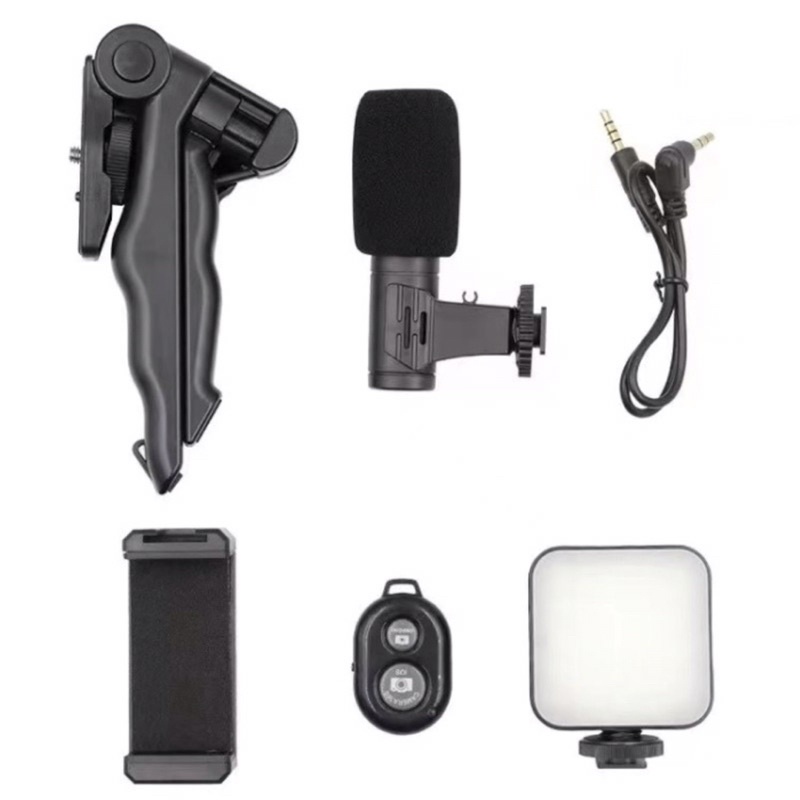 Detail Paket Vlog Kit Tripod AY49 + Mikrofon LED Ligthning Remote Bluetooth