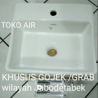 - Wastafel Kotak Sericite WB 2027 Tablet Top or Wall Hung Wash Basin *44mm Waste outlet *Full-Punched one tap hole *Bracket & Wall plug(optimal) * 345 X 305 X 125 mm *Wastafel bisa digantung atau ditaruh di atas meja (2 fungsi)