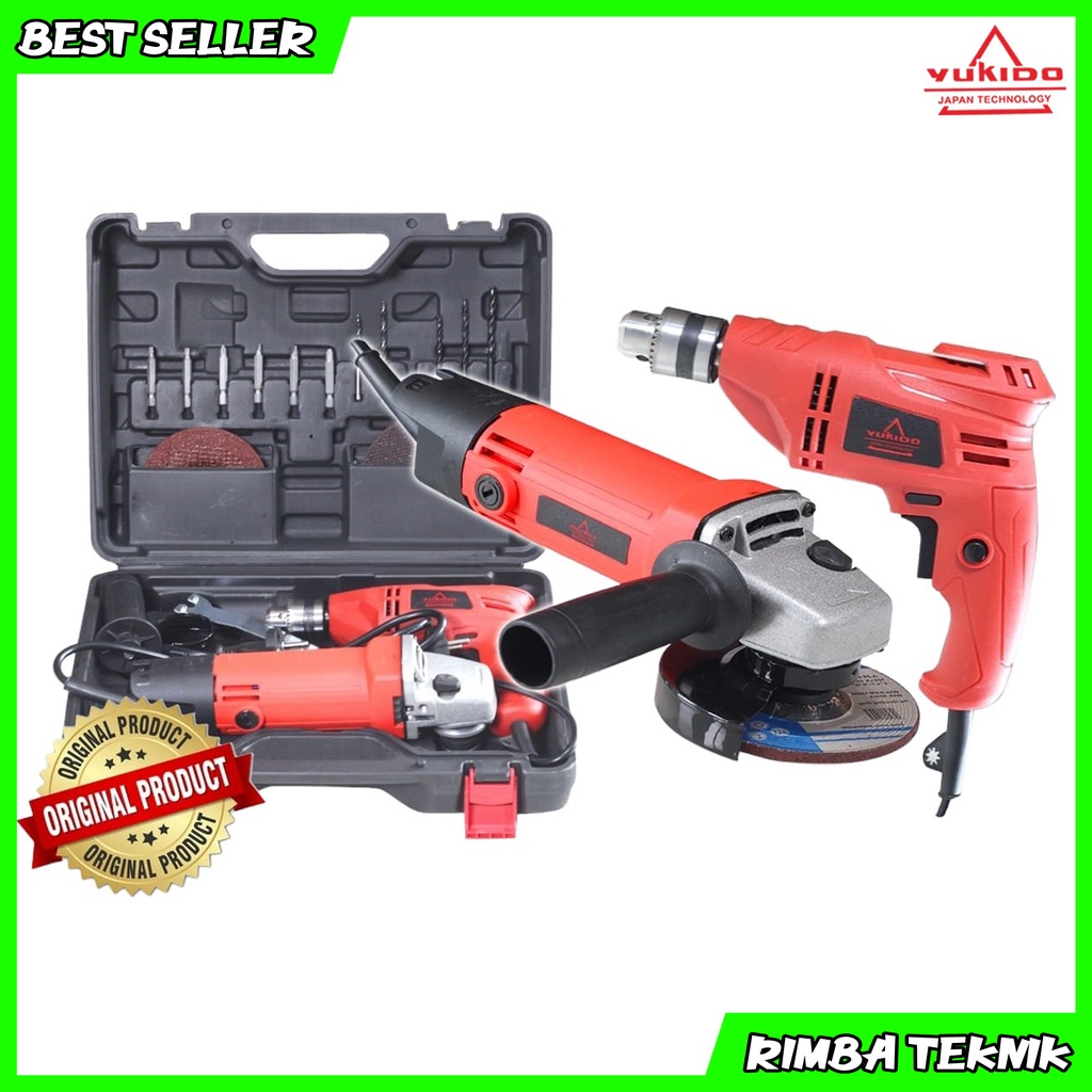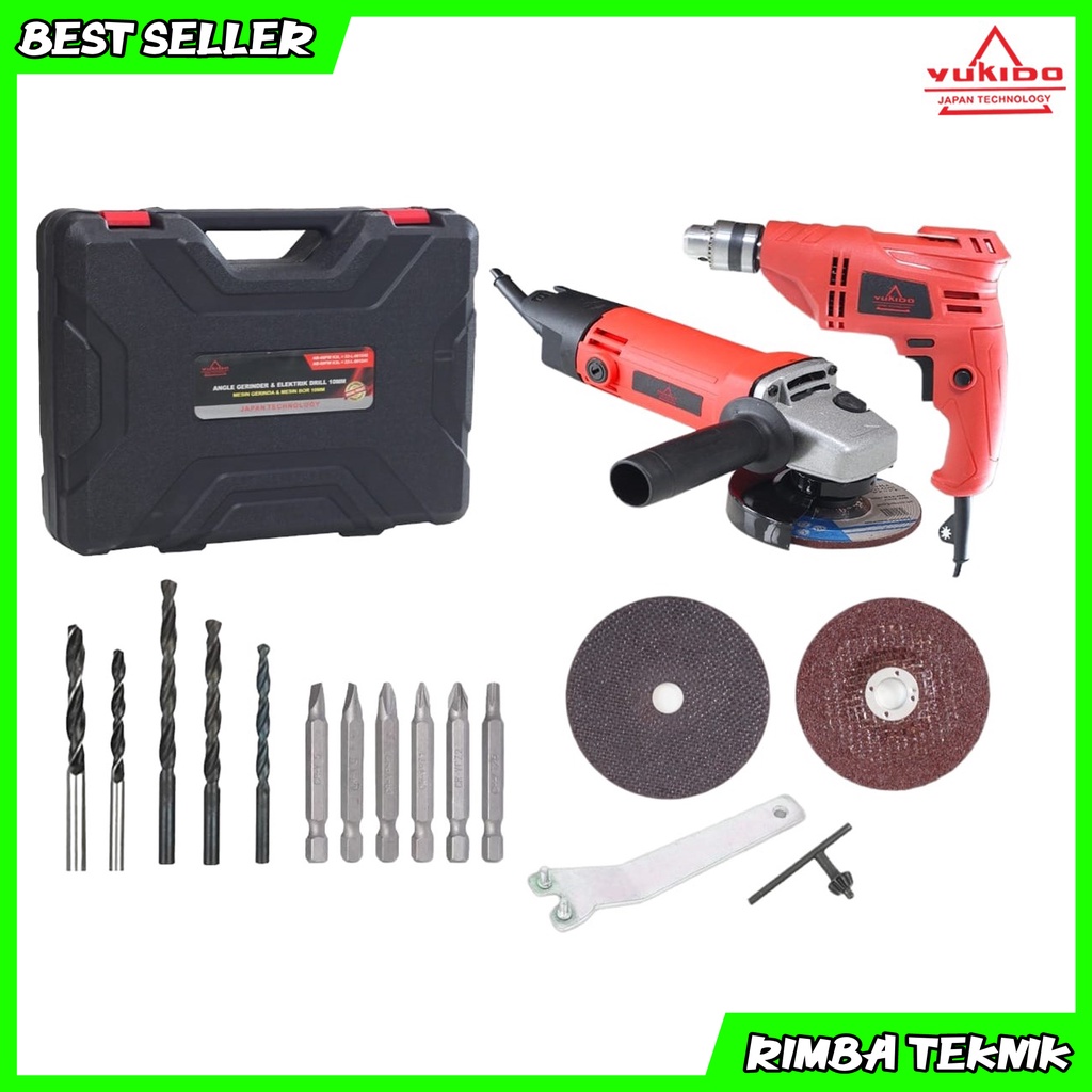 Detail PAKET YUKIDO Set Koper Mesin Gerinda + Mesin Bor Listrik 2 Arah Bolak Balik 10MM Elektrik Drill Listrik