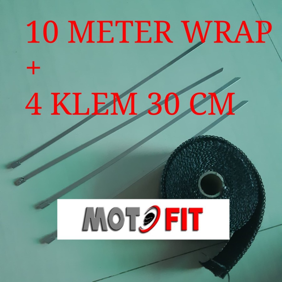 PAKETAN 10 meter Exhaust Wrap 10 free 4 klem cable kabel ties Pembalut Peredam Panas Knalpot motorPAKETAN 10 meter Exhaust Wrap 10 free 4 klem cable kabel ties Pembalut Peredam Panas Knalpot motor