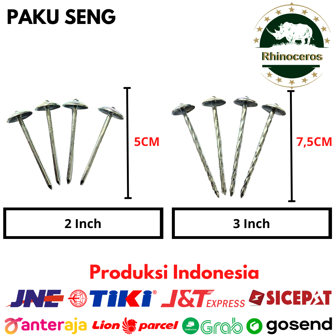 Deskripsi : -. Tersedia dalam 2 ukuran -. Tersedia dalam 2 jenis berat -. Paku seng berfungsi untuk menyambungkan lembaran seng, asbes maupun fiber -. Bentuknya seperti payung dan batangnya memiliki ulir, ada juga yang batangnya polos.
