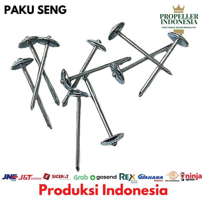 Deskripsi : -. Tersedia dalam 2 ukuran -. Tersedia dalam 2 jenis berat -. Paku seng berfungsi untuk menyambungkan lembaran seng, asbes maupun fiber -. Bentuknya seperti payung dan batangnya memiliki ulir, ada juga yang batangnya polos.