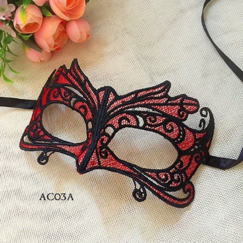 Warna : Hitam Ukuran : Free Size, Panjang 20, Lebar : 10 cm (model pemakaian ikat tali) Include : Topeng Lace Pesta Seksi dilengkapi dengan ikat tali. Bahan: Topeng terbuat dari bahan Lace yang lentur dan nyaman dipakai. Mudah kering apabila terkena air. Sudah ada tali pada bagian kanan kiri topeng untuk mengikat topeng kebagian belakang kepala.