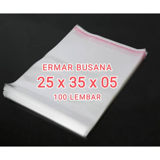 Plastik Opp sudah di lengkapi dengan Lem perekat Ukuran = Lebar 25 cm x Panjang 35 cm Tebal 05 (026/025 Micron) isi -+ 100 Lembar (Sudah Hitungan Pabrik)