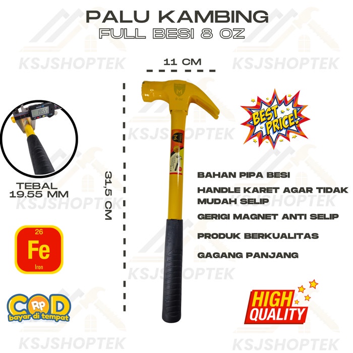 Detail Palu Kambing Full Besi Maxtech Pipa Besi 8 oz Gagang Besi Claw Hammer