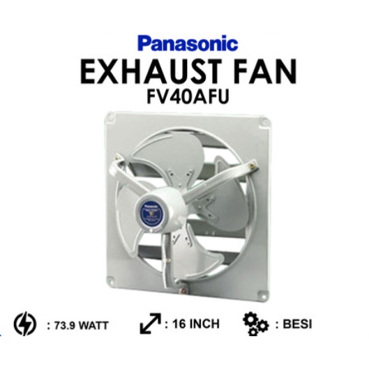 Panasonic FV-40AFU Besi Wall Exhaust Fan [16 inch] merupakan exhaust fan dengan diameter baling 40 cm yang berfungsi membuang udara kotor, menghilangkan debu dan bau, serta mengurangi kelembaban. Exhaust fan ini menghasilkan hembusan udara tenang, suara motor dan baling-baling halus. Exhaust fan ini menggunakan motor kuat dilengkapi dengan Thermal Fuse. Instalasi dan perawatan Panasonic FV-40AFU mudah dengan baling-baling 4 daun terbuat dari metal yang awet dan anti karat sehingga cocok digunakan di dapur dan industri kecil.