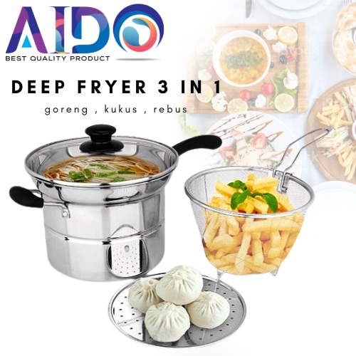 Detail PANCI 3 IN 1/COOKING POT 3 IN 1/DEEP FRYER/PANCI KUKUS,GORENG,REBUS/PANCI MULTIFUNGSI PANCI 218 Panci Goreng Kukus deep Frying Steamer 22cm Serbaguna 2401