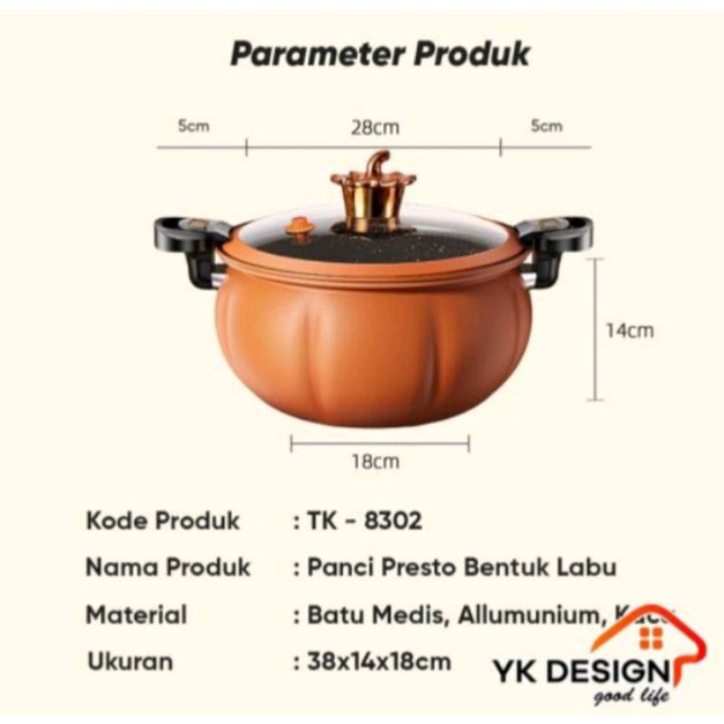 Detail Panci Buah Labu Aesthetic Bahan Batu Medis High Quality 7.5 Liter Tutup Kaca Panci Presto