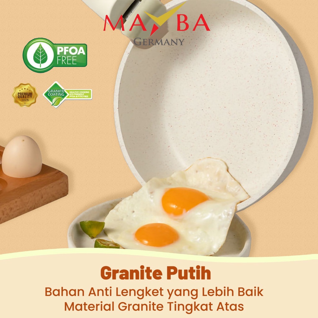 MAYBA FORTUNE 8 Detachable Pan dengan free handle mempunyai keunggulan 1.Pegangan Unik yang Dapat Dilepas - Dengan uji keamanan profesional, tahan hingga 22 lbs / 10 kg. Pegangan bakelite nyaman dipegang dan tetap dingin saat memasak. Hanya dengan satu klik, mulailah perjalanan dapur Anda 2.MAYBA FORTUNE menggunakan bahan Ultra Resistant Granite Coating Anti Lengket Diecast yang kuat dan Tahan Lama- 100% SGS disetujui dengan 0% PFOS, PFOA. Memiliki lapisan anti lengket yang sehat, eco-friendly, bebas timbal, kadmium, dan PFOA. Menampilkan teknologi pelapis anti lengket yang unik, anti lengket paling tahan lama dan sangat mudah di bersihkan 3.PANCI FORTUNE Aman Oven & Aman untuk Pencuci Piring - Kompatibel dengan induksi, ditambah brankas pencuci piring dan oven aman hingga 500F berkat pegangannya yang dapat dilepas (TUTUP DAN PEGANGAN hanya dapat dicuci dengan tangan & harus di lepas saat dimasukkan ke OVEN/MICROWAVE) 4.Penyimpanan Tumpukan Optimal- Penyimpanan optimal dan penumpukan mudah dengan pegangan lepas menghemat ruang hingga 50% 5.Cocok Untuk Semua Kompor - Memperbesar fitur dasar konduktif magnetik tinggi yang memanas dengan cepat dan merata, dan bekerja di semua kompor, termasuk kompor induksi 6. DAPAT DIGUNAKAN UNTUK LANGSUNG MENGHIDANGKAN MAKANAN Karna sudah di lengkapi 3 BUAH silicone mat untuk alas panci di meja Untuk tiap panci