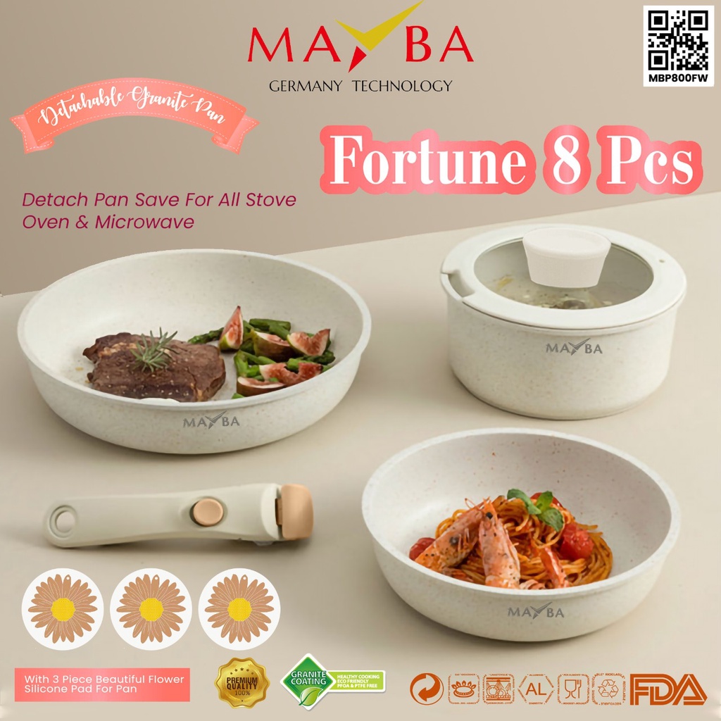 Perlengkapan Rumah > Peralatan Masak > Penggorengan > PANCI FORTUNE 8 PCS Granite Anti lengket kualitas tertinggi Mayba Jerman dengan gagang bisa dilepas - Wajan saji / bisa masuk oven & microwave