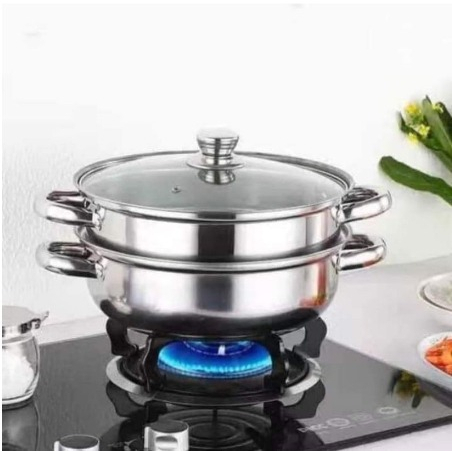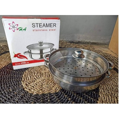 Keterangan Produk : - Panci kukus susun 2 dengan bahan material stainless steel - Dapat digunakan untuk mengukus bakpau dan yang lain nya - Dapat juga difungsikan menjadi panci biasa - Dapat digunakan di semua jenis kompor (termasuk kompor induksi) - Tutup kaca memudahkan kita untuk melihat hasil masakan - Diameter 28cm, tinggi keseluruhan 20cm