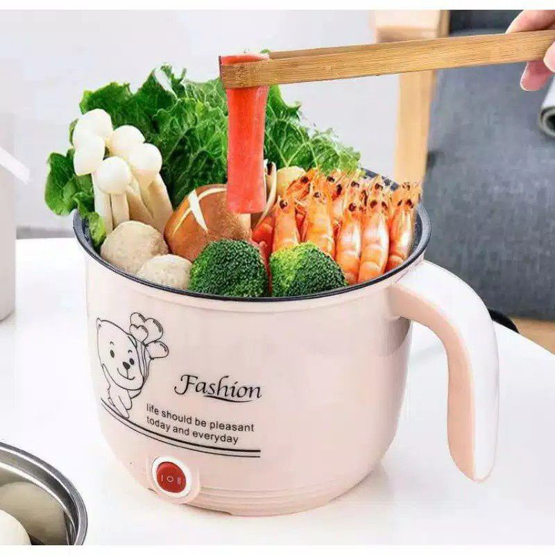 Deskripsi: 1.Panci listrik ini multifungsi, dapat bergunakan dikukus, direbus, ditumis, dipanggang, dan digoreng. 2.Makanan bisa dimasak selesai dalam 25 menit 3.Dengan fungsi penggorengan mudah dibersihkan. 4.Kontrol suhu ganda, aman. Kekurangan air/suhu tinggi mati otomatis. 5. Desain lucu dan imut