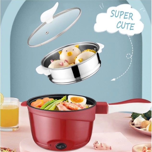 Deskripsi: 1.Panci listrik ini multifungsi, dapat bergunakan dikukus, direbus, ditumis, dipanggang, dan digoreng. 2.Makanan bisa dimasak selesai dalam 25 menit 3.Dengan fungsi penggorengan mudah dibersihkan. 4.Kontrol suhu ganda, aman. Kekurangan air/suhu tinggi mati otomatis. 5. Desain lucu dan imut