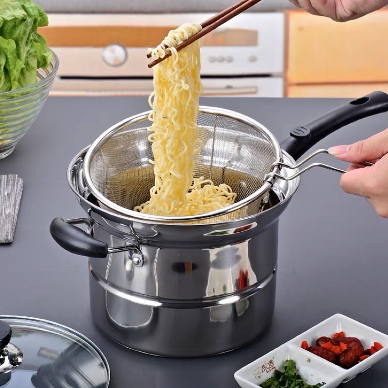 Detail PANCI MIE STAINLESS GAGANG PANJANG- DEEP FRYER 3IN1 PANCI KUKUS - PANCI MIE PANCI GORENG REBUS KENTANG SERBAGUNA