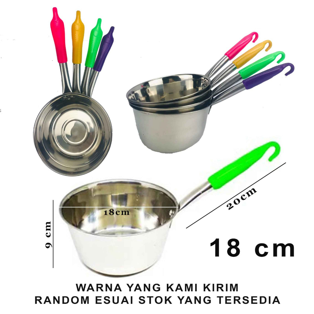 -Brand : NAGAKO -Model : Panci milkpan/panci susu -Bahan : Stainless steel -Dilengkapi : Tutup Kaca Bening -Diameter ; 18 cm -Tinggi keseluruhan : 9.5 cm -Panjang dengan gagang panci : 35 cm -Dimensi : 31 x 18 x 9.5 cm