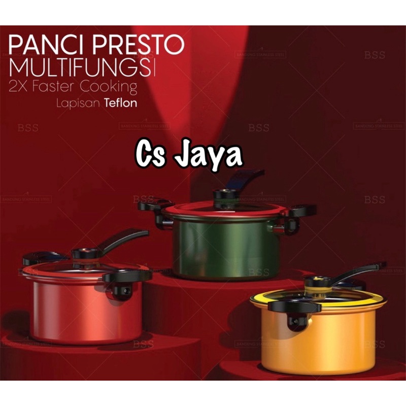Panci presto tekanan 2~3KPA dilengkapi dengan lapisan anti lengket sehingga memudahkan pembersihan noda minyak setelah memasak, dengan kapasitas yang besar dapat memuat satu ekor ayam. Praktis, effektif dan ergonomis, fleksible dapat digunakan di kompor gas maupun kompor elektrik. Cocok untuk anda yang menyukai dan ingin mempercepat proses memasak.