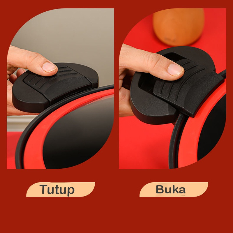 - Penutup transparan dan pengunci rapat sehingga penutup tidak copot atau kendor saat memasak