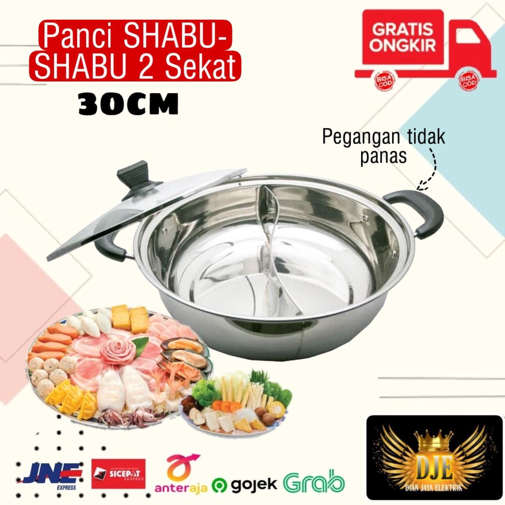Berbahan dasar stainless steel, sehingga awet dan aman digunakan untuk proses memasak. Dilengkapi dengan tutup kaca untuk memudahkan proses memasak. Berukuran 30 cm dengan sekat ditengah, sehingga dapat memasak 2 jenis kuah sekaligus.