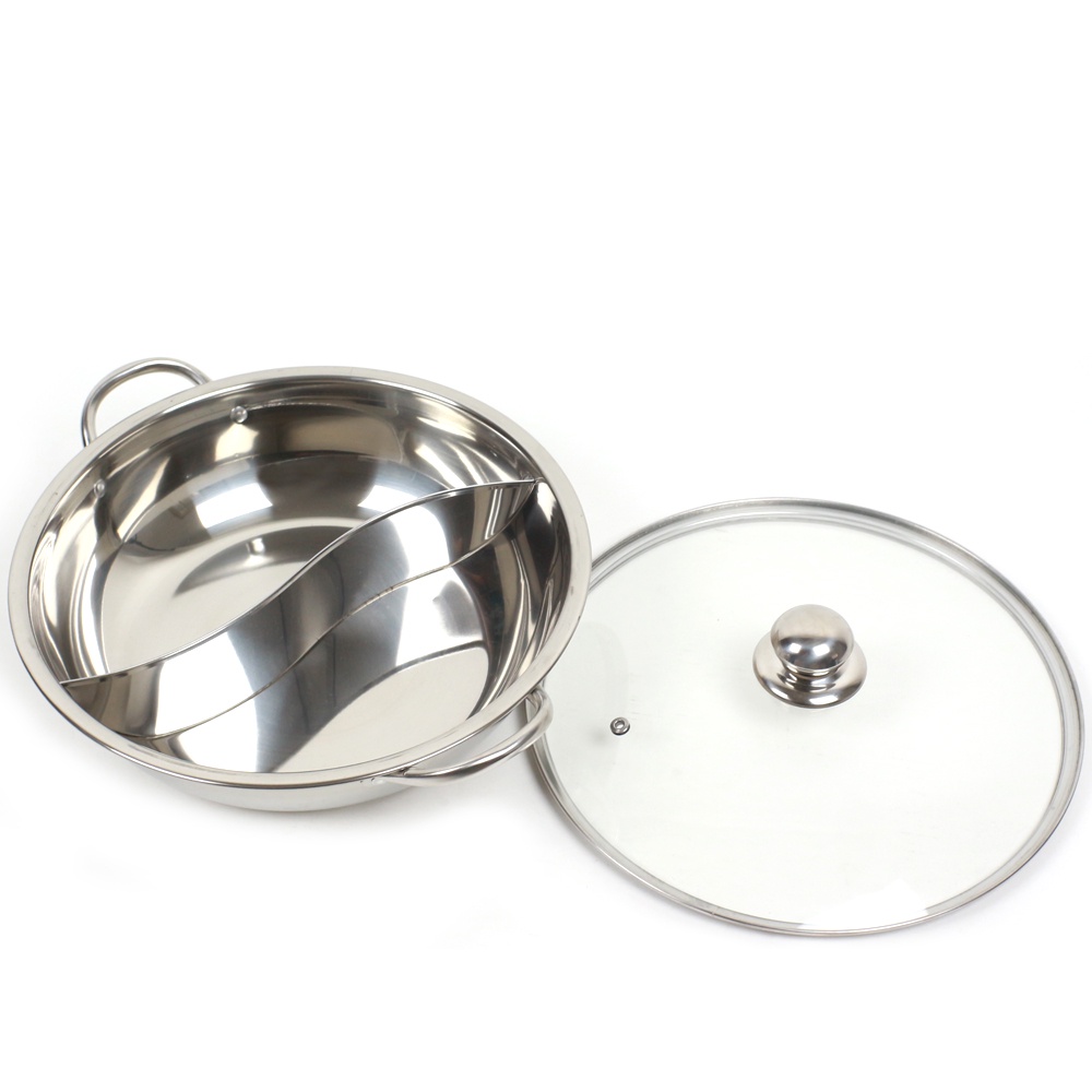 "Type : Panci steambot shabu Model : 2 Sekat Bahan :Stainless Steel Dameter : 30 cm Tinggi : 6.5 cm Dimensi : 30 x 30 x 11 ( P x L x T ) Berat : 1100 gr