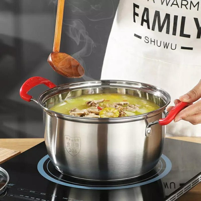 Steamer Stainless Steel dengan desain 2 tingkat, bisa dipakai sekaligus untuk merebus makanan dan mengukus makanan dalam waktu bersamaan. Menggunakan material Stainless Steel (food grade quality) menjaga cita rasa makananmu tetap terjaga.