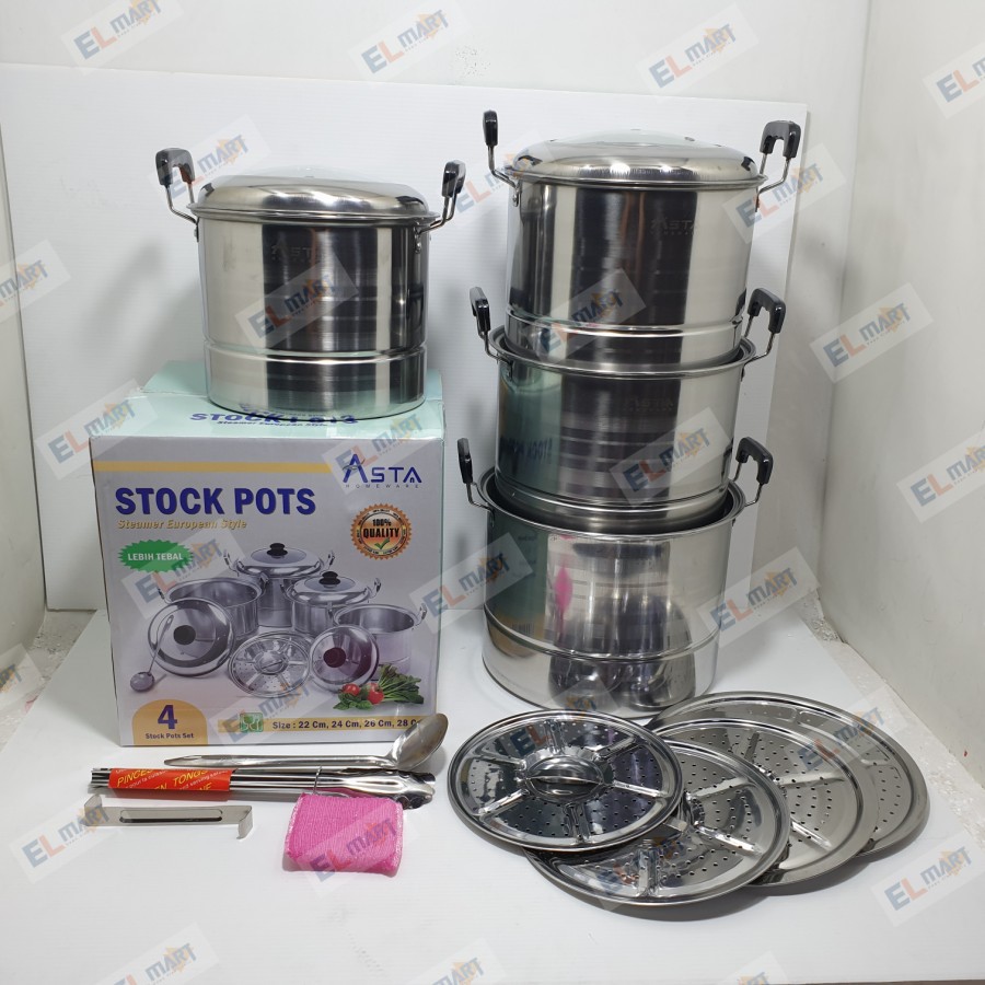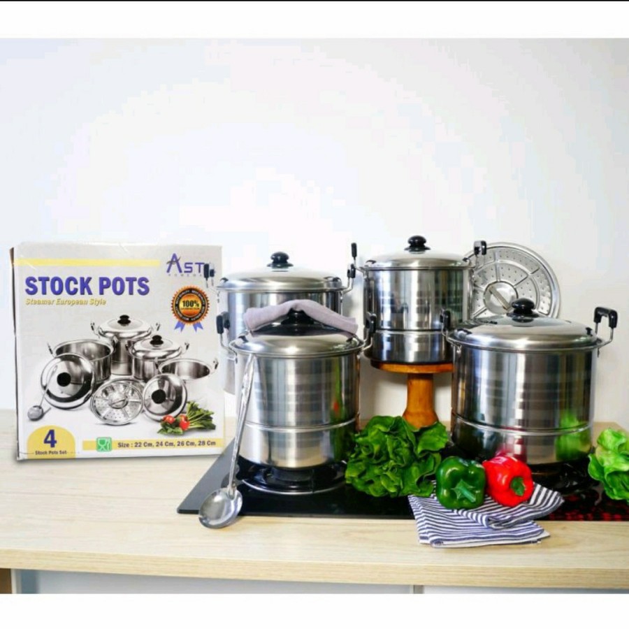 ASTA PANCI STOCK POT EUROPEAN STYLE STAINLESS 4 SET Uk. 22 - 28 CM - PANCI STEAMER Dandang Pengukus Panci Kukus