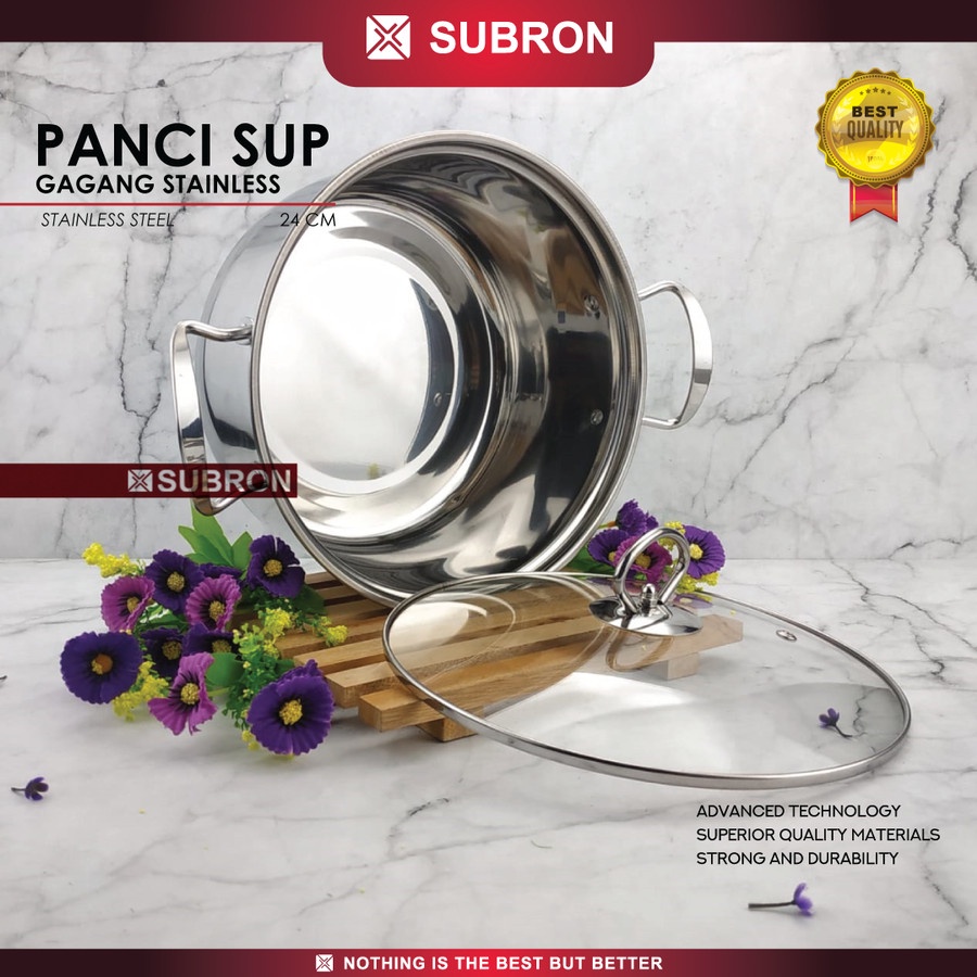 Panci Sup Soup Pot 22cm 24cm Stainless Steel Tutup Kaca Gagang - SUBRON