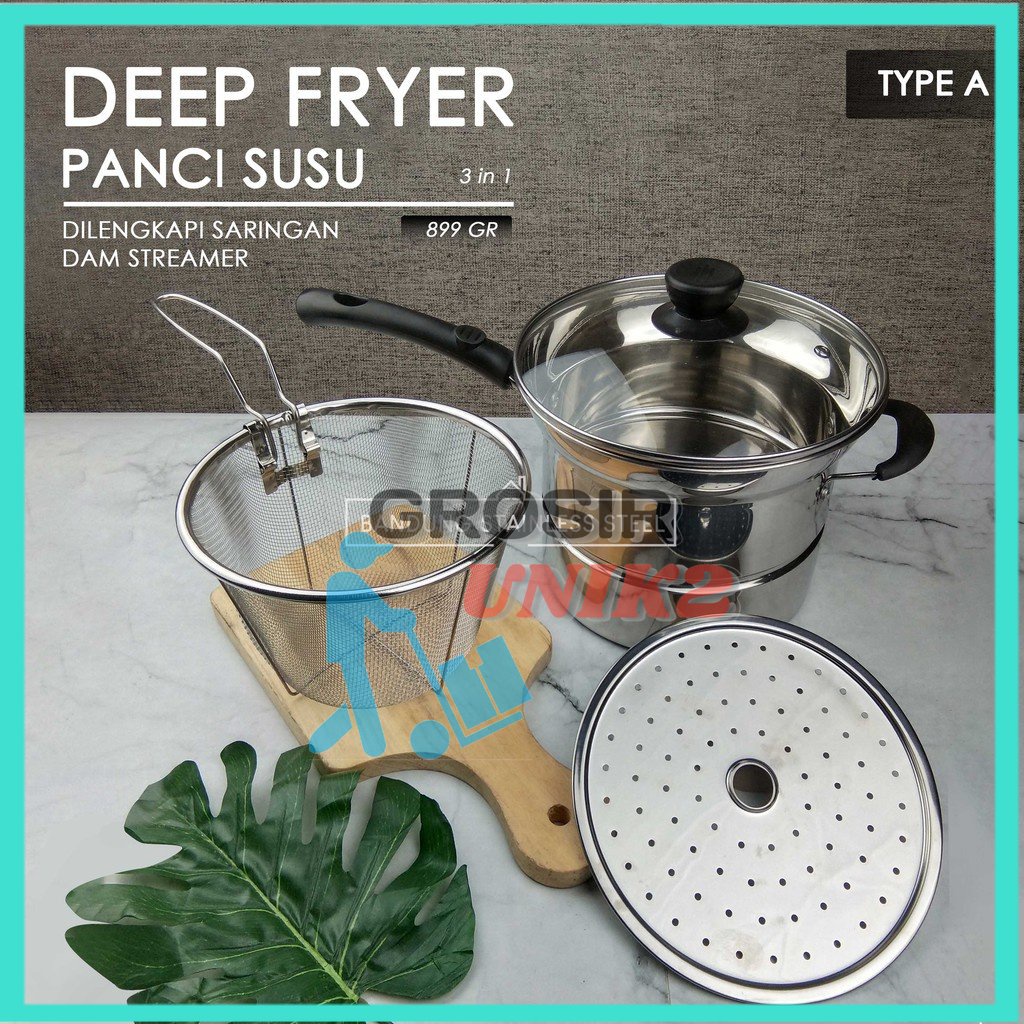Panci ini terbuat dari stainless steel, barang sesuai gambar pertama, bisa buat rebus, kukus dan goreng. ukuran sesuai gambar terkhir . ada 2 model model A: 1 pegangan panjang dan 1 pegangan kuping model B: kedua sisi pegangan kuping. silakan pilihan model yang suka kapasitas kurang lebih 4liter Tinggi Saringan : 11cm Diameter Atas Saringan : 18cm Diameter Bawah Saringan : 11cm