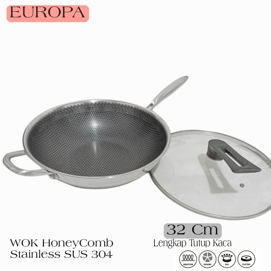Speksifikasi : Bahan Stainless SUS 304 anti karat. Bahan stainless tebal 2mm. Teknologi honeycomb anti lengket. Anti gores Diameter 32 cm Dilengkapi tutup kaca.