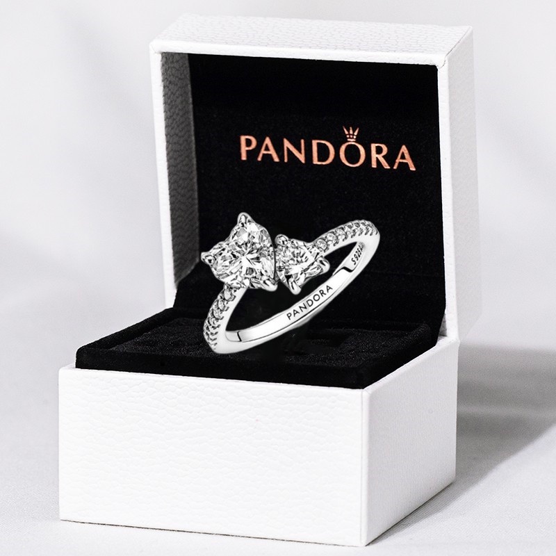 Aksesoris Fashion > Cincin > Pandora Cincin Sterling Silver 925 Desain Hati Ganda Hias Cubic Zirconia Untuk Wanita