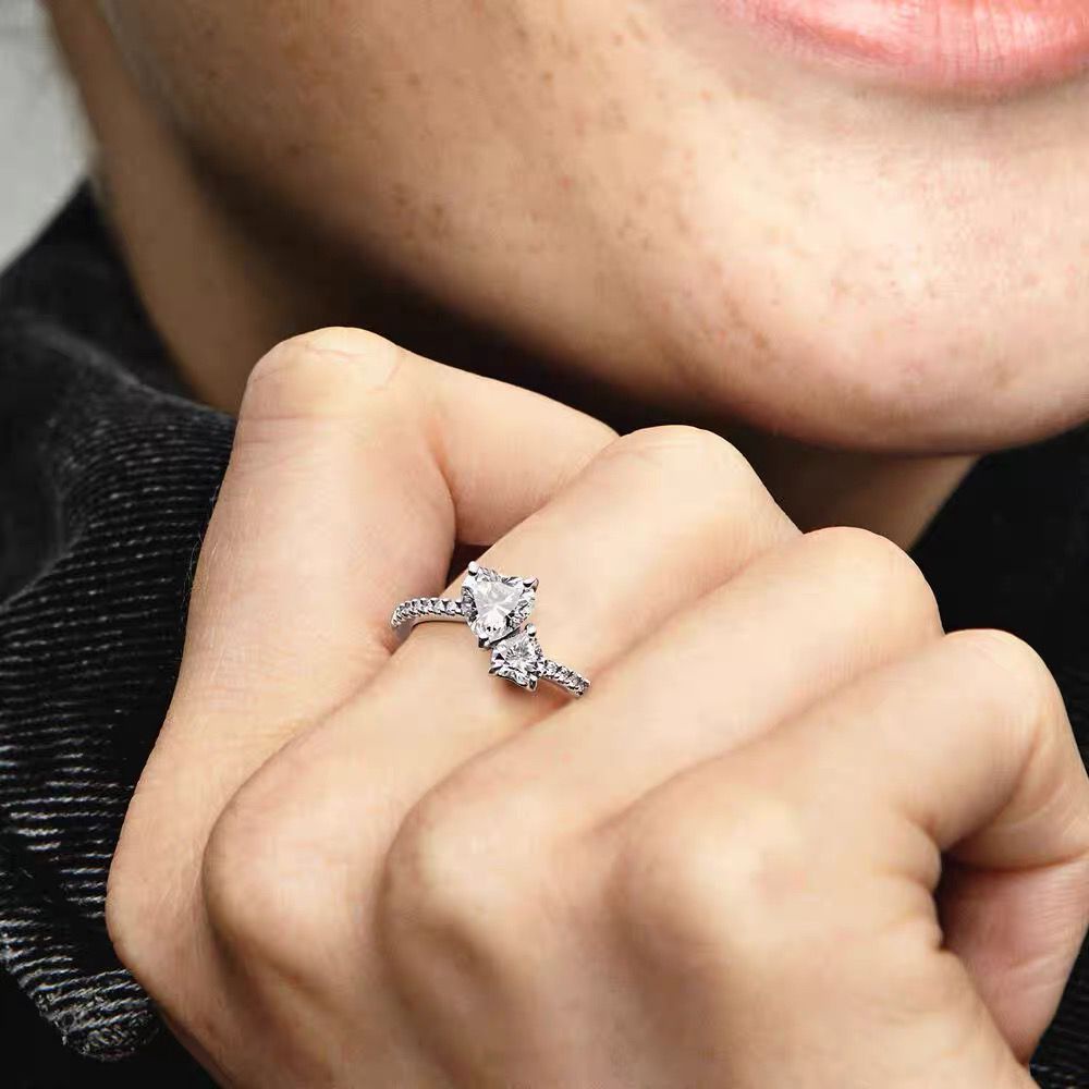 Detail Pandora Double Heart Ring Promise Ring Woman Cincin Kawin Tunangan Perak925 Cubic Zirconia Diamond Ring