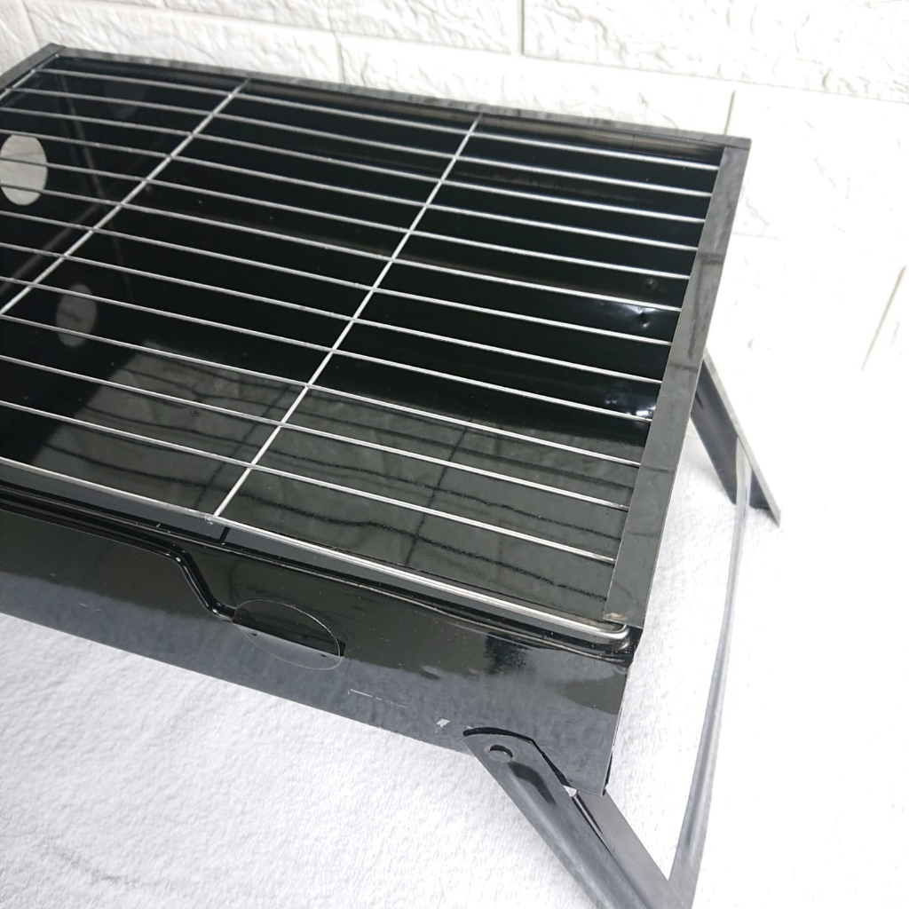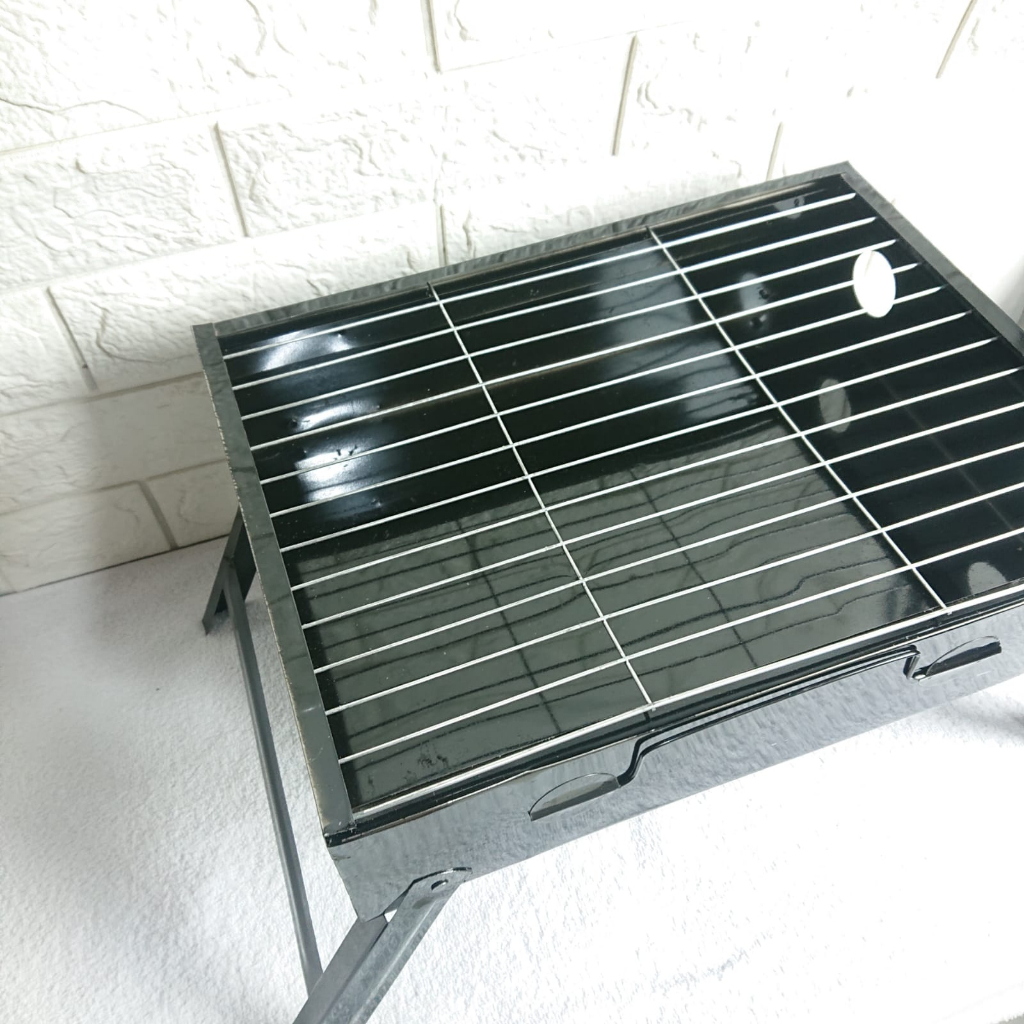 "Bahan Tempat Arang : Carbon Steel ( Hitam ) Bahan Tatakan : Aluminium ( Silver ) Bentuk : Kotak/Square Kaki Penyangga : 4 Tinggi sampai kaki Penyangga : 24 cm Ukuran Produk : 35 x 27 x 9 cm ( P x L x T ) Ukuran Karton : 36 x 28 x 10 cm ( P x L x T ) Berat Produk : 2000 Gram – Mendukung untuk acara besar atau pesta barbeque.