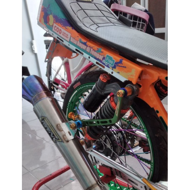 Detail Pangkon knalpot L 17cm breket knalpot L almunium cnc motif coak panjang 17cm