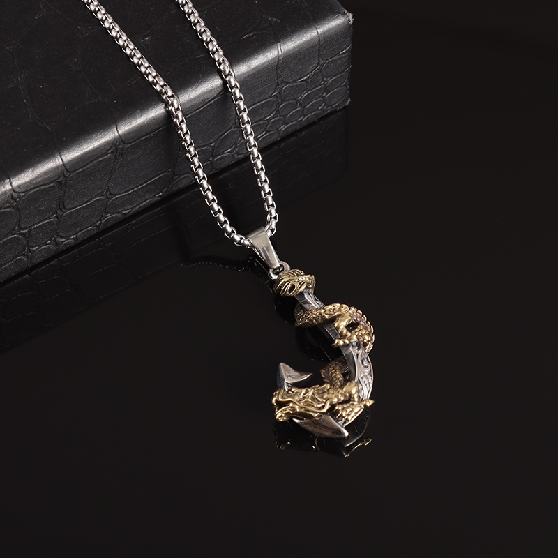 Aksesoris Fashion > Kalung > Liontin > Panlong Fishhook Retro Kreatif Mendominasi Naga Emas Kalung Serbaguna Liontin Premium
