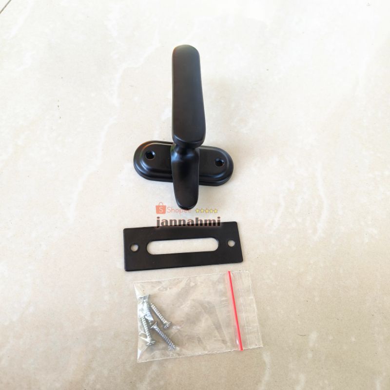 kegunaan untuk pengunci jendela cocok untuk jendela kayu atau alumunium bahan stenlis dan alumnium berat 65gram panjang keseluruhan 10cm (ukuran besar) finishing hitam dan dop satin
