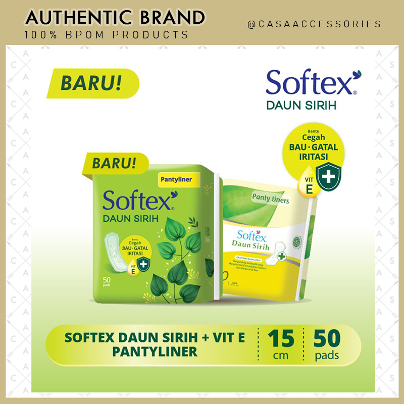 Pantyliner Softex Daun Sirih dengan antiseptik alami dari daun sirih, menjaga area kewanitaan agar tetap bersih, bebas lembap, dan mengurangi bau. Pantyliner Softex Daun Sirih juga fit to body dan memiliki perekat kuat sehingga kita bisa bebas bergerak.