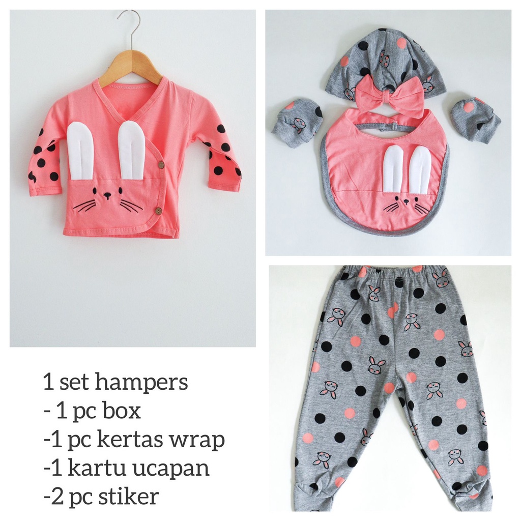 Iyes, Full set bona ini sudah lengkap semua ya, isinya terdiri dari: -1 pc baju aplikasi kelinci model kimono -1 pc celan panjang aplikasi tutup kaki -1 pc bandana -1 pc sarung tangan -1 pc slaber/bib