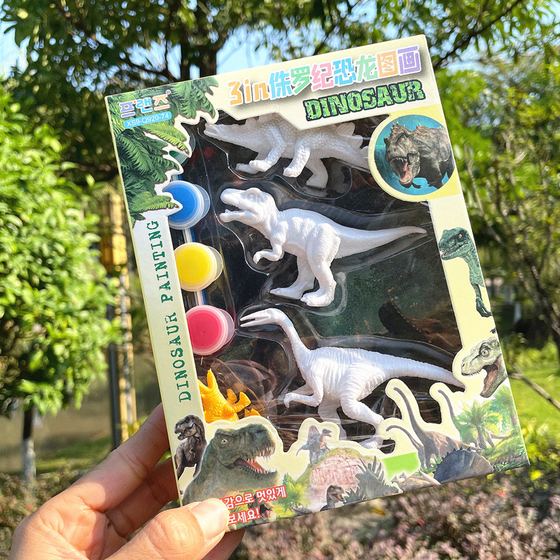 isi 1 Set Dino Terdiri : - 1 Buah Dino Warna Putih ( Belum Diwarnai ) - 2 Buah Telur Dino ( di dalam telor ada dino kecil apabila dipecahkan ) - 1 Buah Kuas Mewarnai - 3 Buah Cat Warna ( Hijau , Merah , Ungu ) - 1 Buah Poster Dinosaur