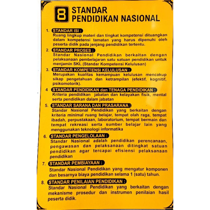 Buku & Alat Tulis > Folder, Organizer Kertas, & Aksesoris > Folder, Organizer Kertas, & Aksesoris Lainnya > papan data 8 standar pendidikan nasional