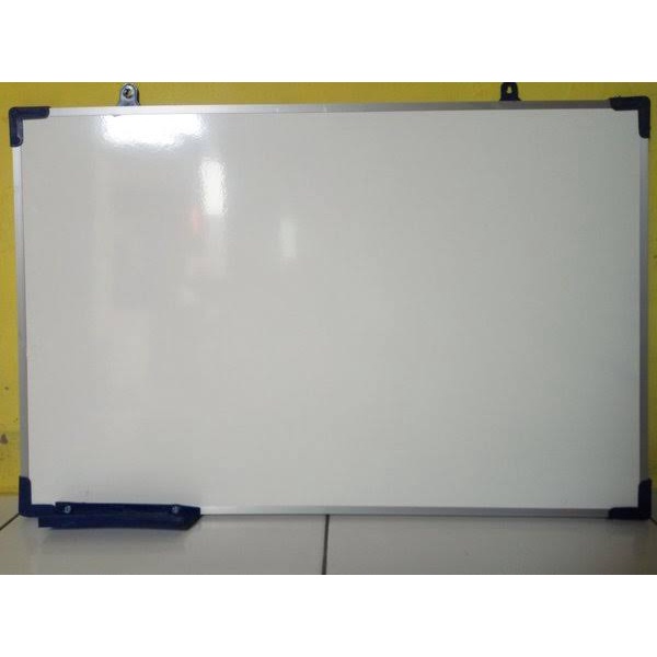 Whiteboard gantung single face Board :plywood (tidak magnetic) List: aluminium Sudut : rounded plastic Pengait : tersedia di belakang papan (ada di foto kedua) Dimensi : all ukuran Bagian belakang bisa dibuat untuk menulis dengan kapur bisa juga dihapus.