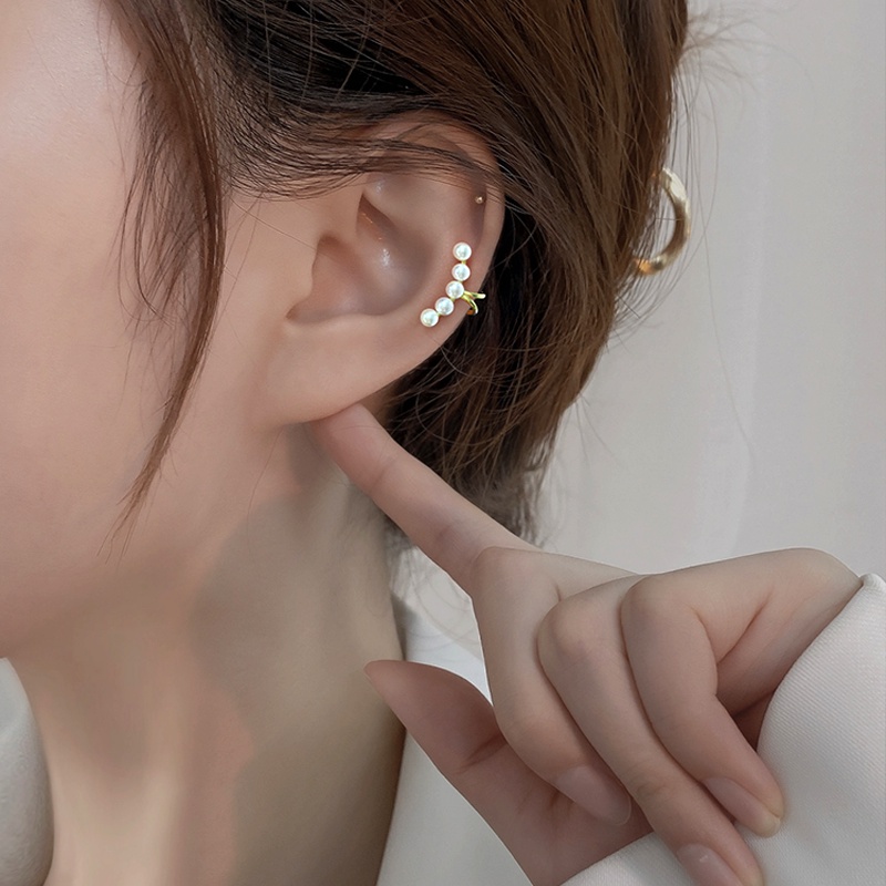 Aksesoris Fashion > Anting > Papaozhu 1PC Elegan Emas Mutiara Manik-Manik Klip Anting Untuk Wanita Perempuan Chic Curve Cuff Earring Bergaya Non Tindik Hiasan Telinga Sehari-Hari
