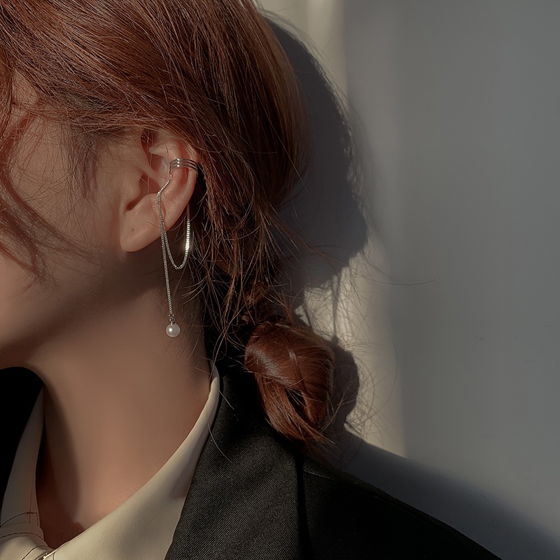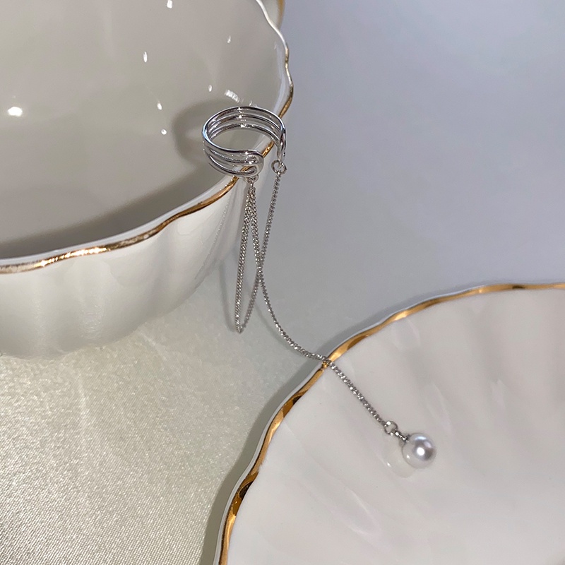 Aksesoris Fashion > Anting > Papaozhu 1PC Korea Tanpa Tindik Mutiara Perak Rumbai Rantai Klip Anting Untuk Wanita Perempuan Sederhana Fashion Tulang Rawan Anting-Anting Telinga Tulang Perhiasan