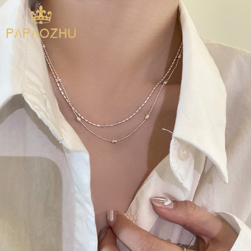 Detail Papaozhu Chic Double Layer S925 Manik-Manik Perak Choker Kalung Untuk Wanita Gadis Minimalis Mungil Pesona Pendek Kalung Fashion Tulang Selangka Rantai Perhiasan Aksesoris