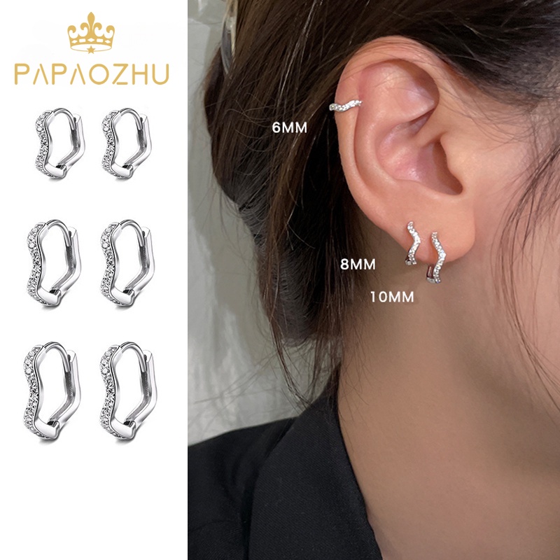 Papaozhu Chic S925 Perak Bersinar Zirkon Gelombang Anting Hoop Untuk Wanita Perempuan Sederhana Berkilauan Kristal Geometris Cuff Earring Trendi Anti Alergi Aksesoris Telinga Pakaian Sehari-Hari