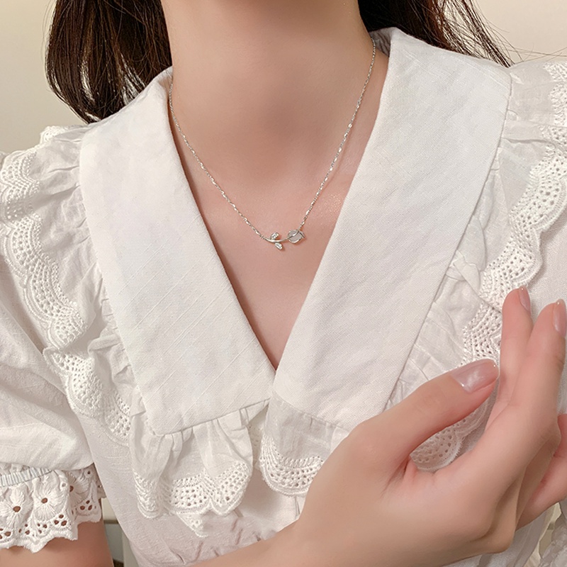Detail Papaozhu Elegan Bersinar Zirkon Moonlight Batu Emas Tulip Liontin Kalung Untuk Wanita Gadis Temperamen Mata Kucing Batu Tulang Selangka Rantai Trendi Leher Perhiasan Pacaran