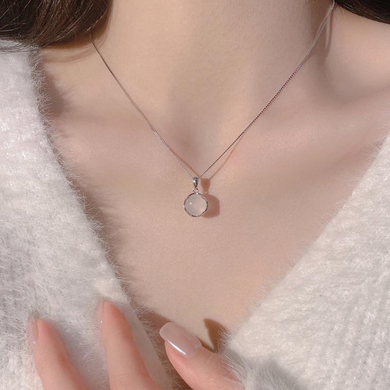 Detail Papaozhu Elegan Bulat Moonstone Liontin Kalung Untuk Wanita Gadis Opal Halus Pesona Kalung Perak Tulang Selangka Rantai Bergaya Leher Perhiasan Pakaian Sehari-Hari