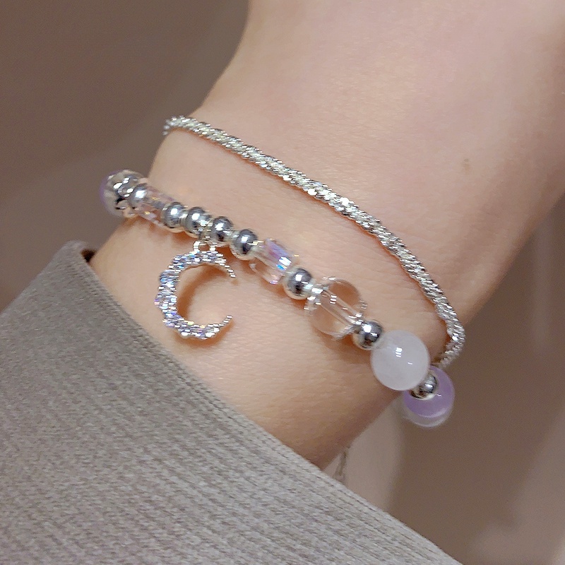 Aksesoris Fashion > Gelang Tangan & Bangle > Papaozhu Elegan Kristal Bulan Pesona Opal Manik-Manik Gelang Untuk Wanita Gadis Indah Glittery Sequin Permata Beads Bracelet Perhiasan Hadiah Untuk Pacar