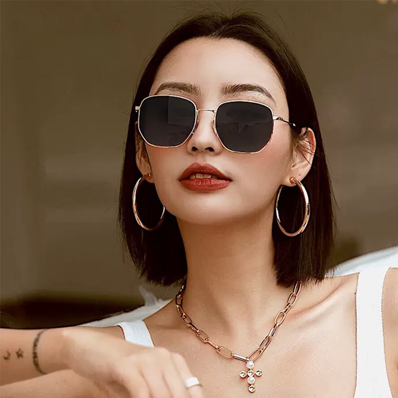 Detail Papaozhu Keren Emas Logam Bingkai Kacamata Untuk Wanita Pria Trendi UV400 Perlindungan Warna Temperamen Mengemudi Kacamata Matahari OOTD Eyewear